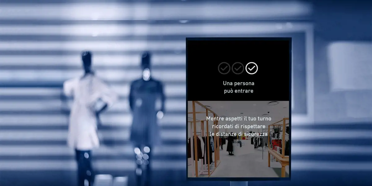 Quando un massimo di persone predefinito viene raggiunto, al cliente successivo è automaticamente chiesto di attendere fino a quando una persona non esce dal negozio.