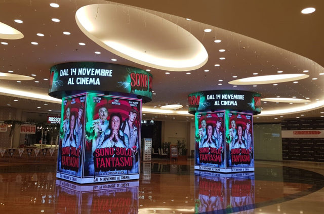 Il progetto di Wave&Co per il Centro Commerciale Roma Est prevede un’applicazione retail dei nostri schermi led curvi per negozi, in una disposizione geometricamente molto interessante: colonne dal fusto quadrato inscritto in un capitello circolare.